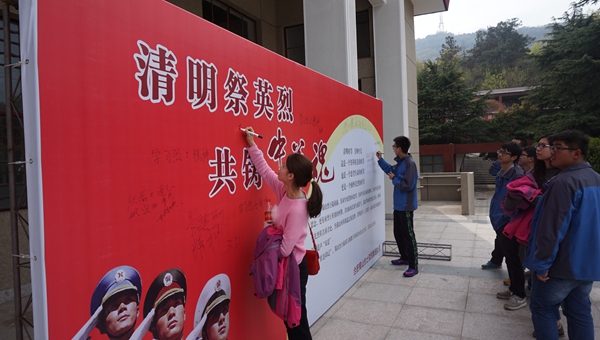 大家對(duì)革命先烈的墓碑進(jìn)行清掃,向革命英雄三鞠躬,并敬獻(xiàn)了花籃,青年們來到抗日戰(zhàn)爭(zhēng)宣傳展板前參觀,追思為國家興衰、民族存亡不惜拋頭顱、灑熱血的英雄,深切緬懷革命先烈?;顒?dòng)中,大家在“清明祭英烈,共鑄中華魂”宣傳牌前依次留言明志,誓將革命先烈大無畏的奉獻(xiàn)精神傳承下去,在自己的崗位上開花結(jié)果,讓青春無悔。