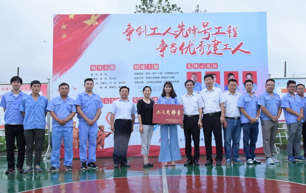8月12日下午,集團公司工會副主席吳曉伍、女工委主任胡愛紅一行蒞臨公司阜陽北路高架1標項目,驗收“工人先鋒號”創(chuàng)建工作并授牌。