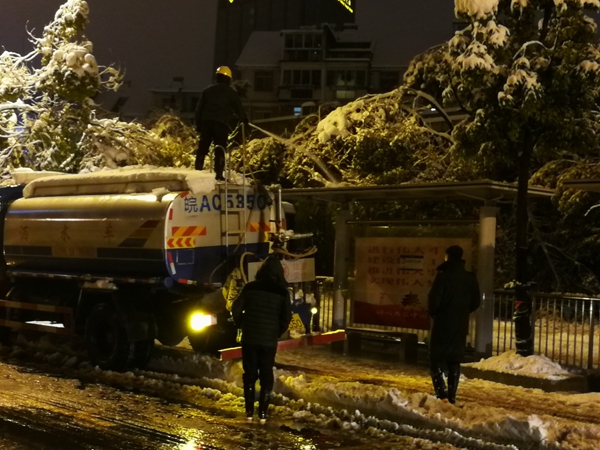 分公司在做好自身除雪救災(zāi)工作的同時(shí),積極調(diào)配資源,參加到合肥市區(qū)公交站臺(tái)積雪清掃工作。從4日上午10:00開(kāi)始,分公司集結(jié)300多人,調(diào)配裝載機(jī)、灑水車(chē)等各類(lèi)機(jī)械設(shè)備20多臺(tái),與積雪比速度,清掃持續(xù)到5日凌晨4:00左右,共清掃了40多座公交站臺(tái)。
