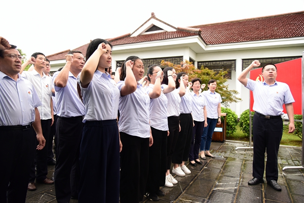 下午,在李克農(nóng)故居,錢總帶領(lǐng)全體黨員重溫了入黨誓詞。在渡江戰(zhàn)役紀(jì)念館,一件件陳列的歷史文獻(xiàn),一幅幅革命烈士的照片,一個(gè)個(gè)感人至深的革命故事,一段段珍貴的影像資料,讓全體黨員重回到那段跌宕起伏、波瀾壯闊的革命歲月,親身感受中國共產(chǎn)黨艱苦卓絕的奮斗史和輝煌歷程,接受了一次黨史黨性教育和精神洗禮。
