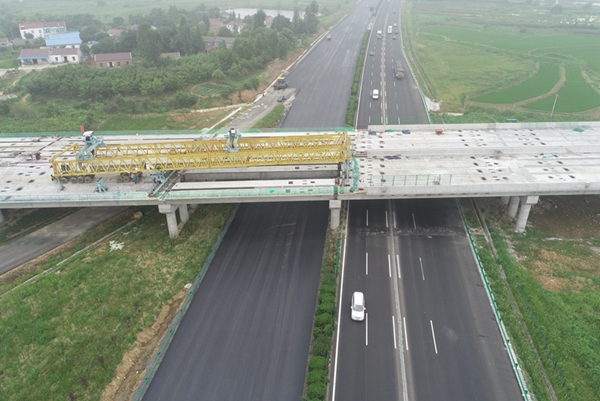 上跨G3京臺(tái)高速分離立交橋?yàn)樯娓咚偈┕?所跨路段日均車流量達(dá)五萬多輛,并與正在進(jìn)行的高速改擴(kuò)建瀝青攤鋪交叉施工,需要在規(guī)定的半幅封閉時(shí)間內(nèi)完成上跨梁板架設(shè)任務(wù),施工環(huán)境復(fù)雜,組織難度較大。經(jīng)過多次專家論證,項(xiàng)目不斷優(yōu)化施工方案,并堅(jiān)持責(zé)任到人,狠抓時(shí)間節(jié)點(diǎn),有效克服了各項(xiàng)困難,梁板架設(shè)有序推進(jìn),順利實(shí)現(xiàn)了上跨高速橋的順利合龍。