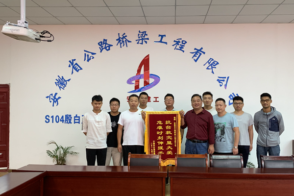 9月4日,寧國(guó)市交通運(yùn)輸局副局長(zhǎng)程紹忠一行為S104PPP項(xiàng)目送來(lái)感謝信和一面書(shū)寫(xiě)著“抗臺(tái)救援顯大愛(ài)、危難時(shí)刻伸援手”的錦旗,對(duì)項(xiàng)目近期在支援地方抗洪搶險(xiǎn)中所做的貢獻(xiàn)表示感謝。