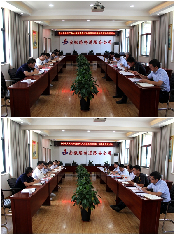8月15日上午,道路分公司黨總支召開專題學(xué)習(xí)研討會(huì),深入學(xué)習(xí)貫徹落實(shí)習(xí)近平總書記關(guān)于制止餐飲浪費(fèi)的重要指示精神和《中華人民共和國公職人員政務(wù)處分法》,分公司領(lǐng)導(dǎo)班子、總支委員及后勤部門負(fù)責(zé)人參加學(xué)習(xí)并結(jié)合實(shí)際開展研討。