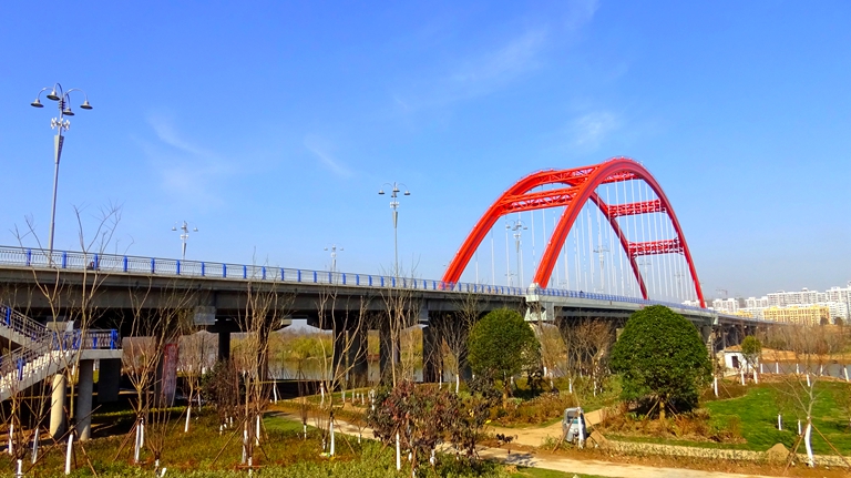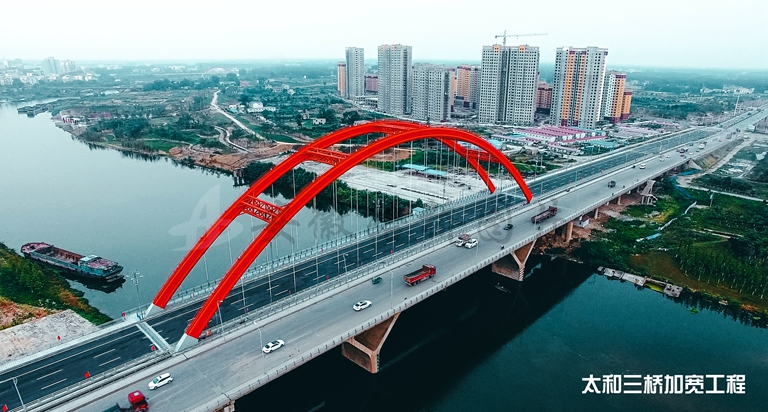 105國(guó)道(三角元至太和段)太和潁河三橋加寬工程于2015年8月開工,2017年7月順利交工。橋梁全長(zhǎng)576.53米,主橋全寬23.2米,引橋全寬19.5m,主跨為152米下承式鋼管砼系桿拱橋,引橋?yàn)?0m箱梁結(jié)構(gòu),下部結(jié)構(gòu)采用柱式墩,鉆孔灌注樁基礎(chǔ),設(shè)計(jì)荷載等級(jí)為公路-I級(jí)。該項(xiàng)目建成通車以來(lái),有效改善了太和縣城潁河兩岸的交通狀況,對(duì)加快城鎮(zhèn)化建設(shè)起到了重要作用。