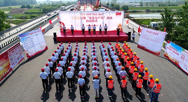 6月1日上午,道路分公司2021年“安全生產(chǎn)月”啟動(dòng)儀式暨“學(xué)黨史、辦實(shí)事、筑安全、促生產(chǎn)” 主題黨日活動(dòng)在合寧改擴(kuò)建滁河大橋施工現(xiàn)場(chǎng)成功舉辦。公司黨委委員、副總經(jīng)理杜海峰出席活動(dòng)并宣布“安全生產(chǎn)月”啟動(dòng),分公司領(lǐng)導(dǎo)班子、后勤部門負(fù)責(zé)人,省內(nèi)各項(xiàng)目經(jīng)理、支部書記及安全部長(zhǎng),肥東片區(qū)項(xiàng)目黨員、團(tuán)員青年及一線工人代表共計(jì)百余人參加活動(dòng)。