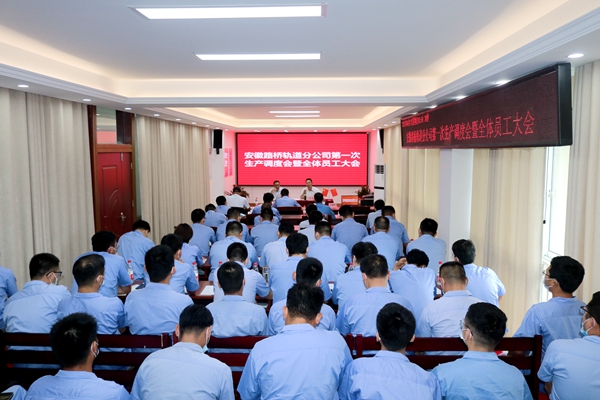 6月13日下午,軌道分公司在軌道3號線南延2標召開全體員工大會,黨總支副書記趙明星主持會議。