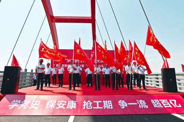 6月24日,道路分公司“學(xué)黨史促大干,迎大慶謀發(fā)展”勞動競賽動員部署會暨“我為群眾辦實事”服務(wù)提升活動在固蚌02標(biāo)澮河大橋現(xiàn)場和渡江戰(zhàn)役總前委孫家圩子舊址成功舉辦。分公司領(lǐng)導(dǎo)班子、后勤各部門負(fù)責(zé)人、各項目經(jīng)理、黨支部書記、青年代表及工人代表共計70余人參加。