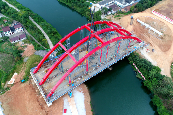 涇縣S457寧涇公路青弋江灌渠大橋主橋提前45天合龍