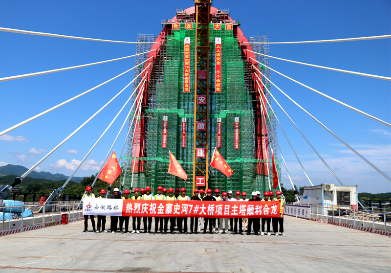 史河(金寨段)防洪提升工程-7#防汛大橋項目主塔順利合龍