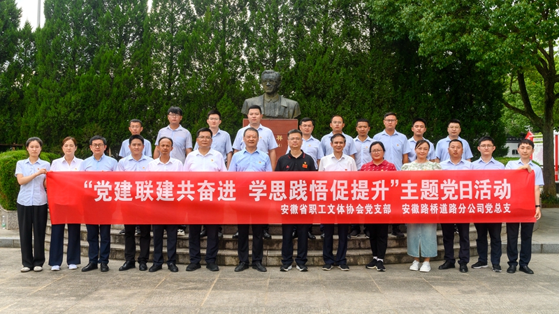 7月21日,安徽省職工文化體育協(xié)會黨支部與道路分公司黨總支在宣城涇縣聯(lián)合開展“黨建聯(lián)建共奮進 學思踐悟促提升”主題黨日活動。安徽省職工文化體育協(xié)會會長陳剛,黨支部書記、常務副會長吳曉伍,公司黨委副書記、工會主席王勝利參加活動。