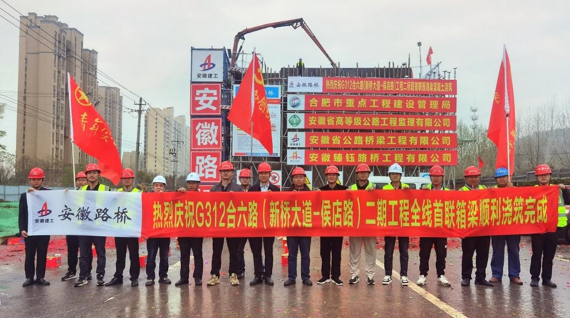 項目堅持以實干出成績,向時間要效益,以“開局即決戰(zhàn),起步即沖刺”的姿態(tài),跑出施工加速度。首根樁基開鉆、首根墩柱澆筑、首座承臺澆筑、首聯(lián)現(xiàn)澆箱梁澆筑……項目工期以及形象進度始終領跑全線。建設過程中,合肥新聞聯(lián)播以《安徽路橋G312:無懼“烤”驗 用汗水筑就城市之美》為題關(guān)注項目“高溫下的堅守”,中安在線、合肥日報、合肥晚報等主流媒體也高頻聚焦項目建設進展。