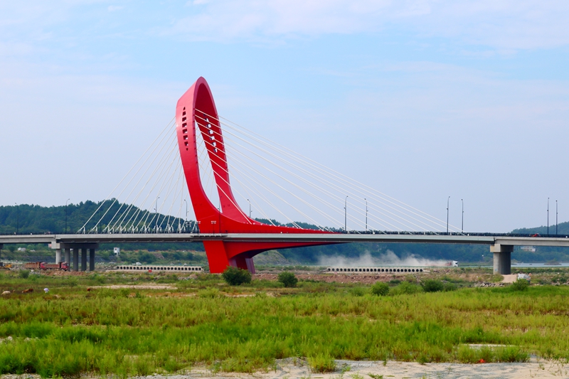 該項(xiàng)目位于金寨縣江店新城內(nèi),為蓮花山路過(guò)河通道,路線全長(zhǎng)約1.1公里,其中橋梁全長(zhǎng)約629米,主橋長(zhǎng)159米,采用“搖籃”造型,為獨(dú)塔雙索面斜拉橋。項(xiàng)目建成后,將有效改善周邊居民的出行條件和道路運(yùn)行環(huán)境,對(duì)促進(jìn)金寨縣河西片區(qū)與江店新城一體化發(fā)展具有重要意義。
