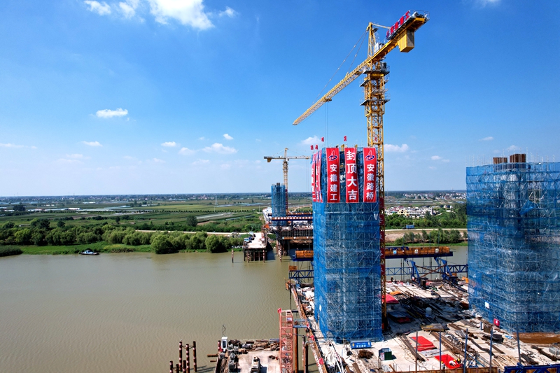 【名媒聚焦】蚌埠日報:渦河八橋主橋首個塔柱順利封頂