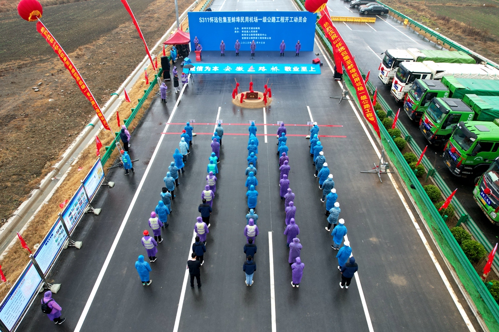 12月13日上午,S311懷遠(yuǎn)包集至蚌埠民用機(jī)場一級(jí)公路工程項(xiàng)目舉行開工動(dòng)員會(huì)。蚌埠市交通運(yùn)輸局黨委書記、局長戴勇出席儀式并宣布項(xiàng)目開工,蚌埠市交通運(yùn)輸局黨委委員、副局長王光銀主持儀式,公司黨委書記、董事長錢申春應(yīng)邀出席并代表參建單位發(fā)言。蚌埠市交通運(yùn)輸局黨委委員、公路管理服務(wù)中心主任王殿利,蚌埠市機(jī)場建設(shè)投資有限公司黨委委員、副總經(jīng)理徐凱,懷遠(yuǎn)縣副縣長趙樹建、王沖參加動(dòng)員會(huì)。