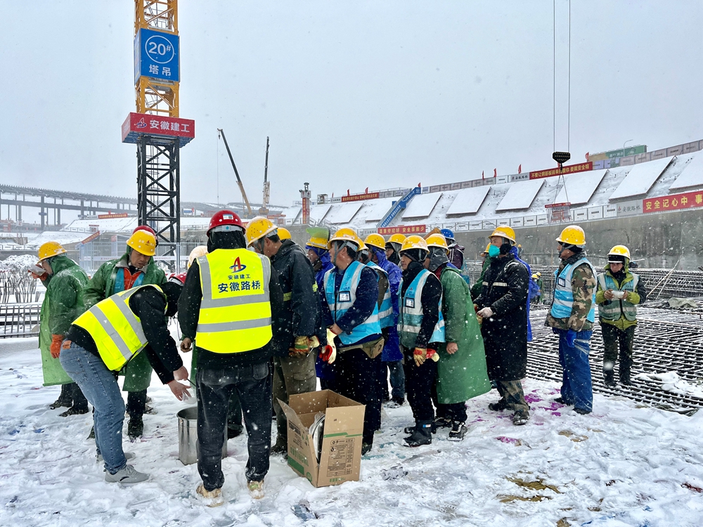 伴隨著寒潮來襲,為積極應(yīng)對降雪和斷崖式降溫天氣,確保全體建設(shè)者溫暖過冬,近日,公司各項目精心打好冬季送溫暖“組合拳”,為一線建設(shè)者們及時發(fā)放防寒服、棉鞋和手套等防寒防滑物品,在寒風(fēng)中為他們送去姜湯、熱水,在深夜里準(zhǔn)備好熱湯、熱飯......用濃濃的“家文化”驅(qū)散寒冷,讓建設(shè)者們在冬日里暖身又暖心,為全面沖刺年度目標(biāo)任務(wù)保駕護航。