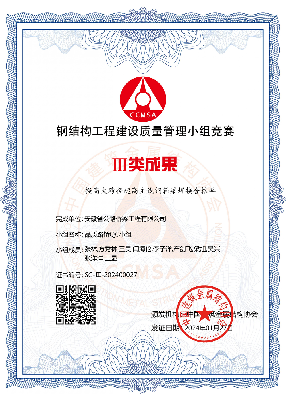 1月25日至27日,中國建筑金屬結構協會在北京召開“2023年鋼結構工程建設質量管理小組競賽活動”,公司獲得I類成果2項,III類成果1項。
