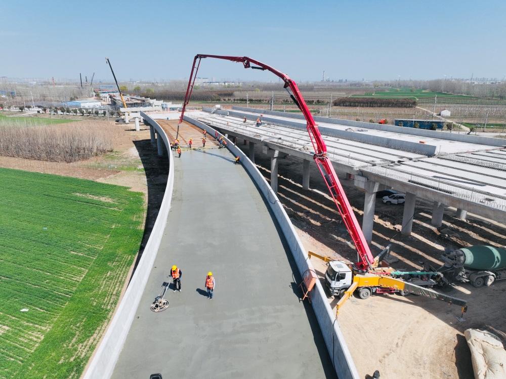 “施工過程中,我們嚴(yán)把原材料質(zhì)量、橋面清理、鋼筋網(wǎng)片鋪設(shè)、混凝土澆筑等各道工序,攤鋪后對混凝土表面進(jìn)行二次收面,及時覆蓋土工布并進(jìn)行灑水養(yǎng)生,使橋面達(dá)到內(nèi)實外美效果?!敝苌垸i說,全線橋面鋪裝總計88聯(lián),橋面鋪裝首件工程的順利澆筑,為后續(xù)橋面施工提供了技術(shù)支撐,截至3月底已累計完成10跨。