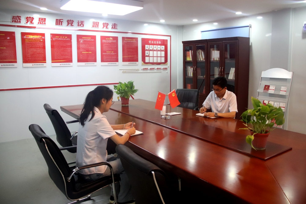 徐淮阜高速淮北段項目黨支部與黨員開展一對一談心談話,通過正面引導(dǎo)和警示提醒,引導(dǎo)黨員不忘初心、清正廉潔。