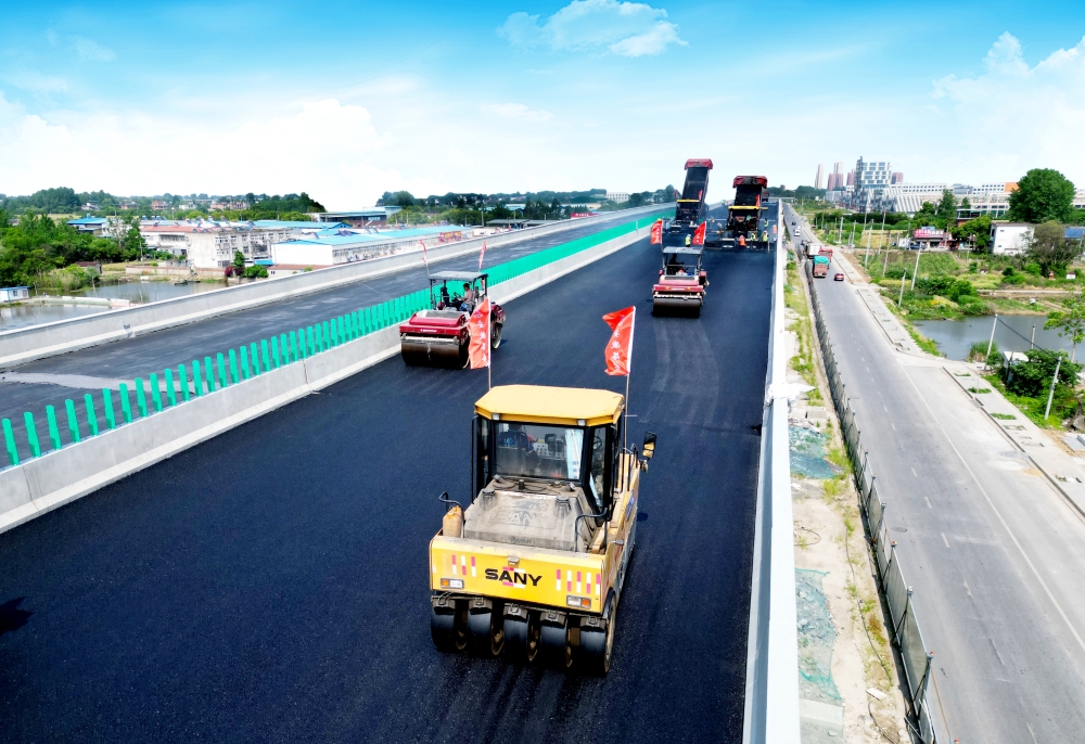 【路橋“競(jìng)”行時(shí)】G347通江大道03標(biāo)西灣路主線高架橋?yàn)r青中面層攤鋪圓滿完成