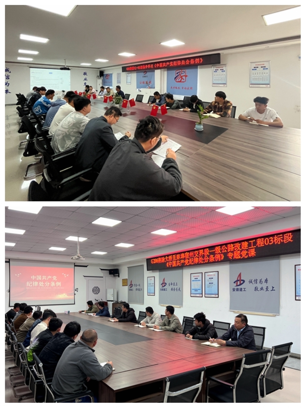 G36明蚌改擴(kuò)建1標(biāo)黨支部、G206-03標(biāo)項(xiàng)目黨支部通過(guò)專(zhuān)題會(huì)議與黨課,深度解析學(xué)習(xí)《中國(guó)共產(chǎn)黨紀(jì)律處分條例》,將紀(jì)律內(nèi)化于心、外化于行,促使紀(jì)律規(guī)范成為項(xiàng)目團(tuán)隊(duì)日常行為的自覺(jué)遵循。