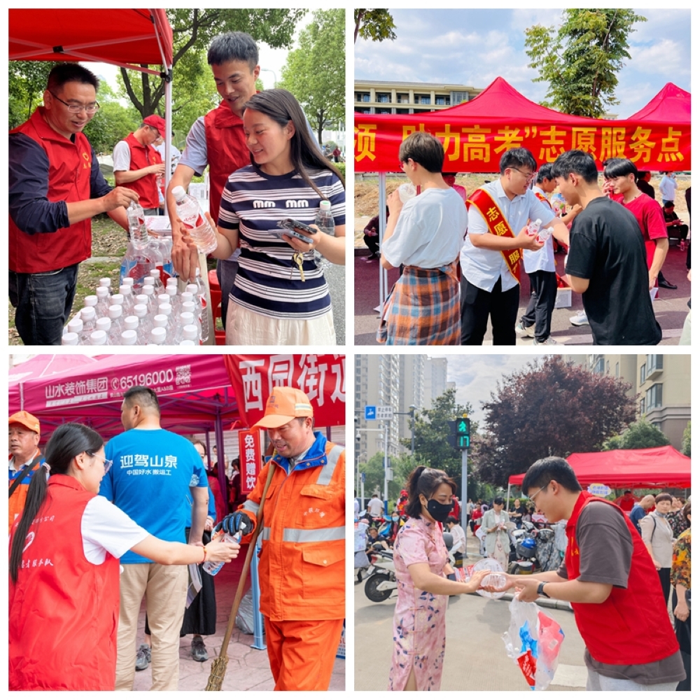 在考點(diǎn)外,志愿者們?cè)O(shè)立了“愛心助考站”,將助考遮陽棚變成“能量站”,為考生及家長搭建遮陽避雨的休息區(qū),提供應(yīng)急藥品、防暑降溫用品、文具補(bǔ)給等貼心服務(wù)。隨時(shí)為莘莘學(xué)子、陪考家長、工作人員和民警同志“加油”“打氣”。