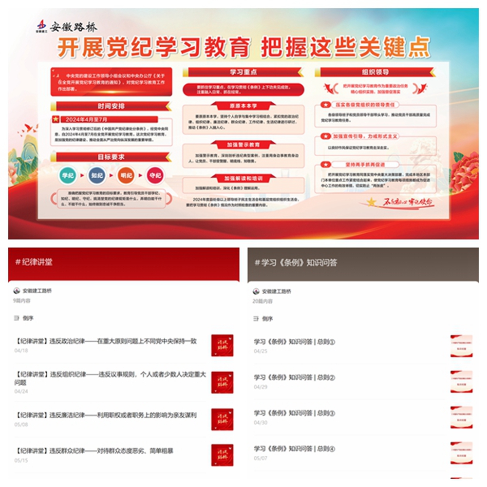 黨紀(jì)學(xué)習(xí)教育開展以來,公司黨委高度重視宣傳引導(dǎo)、氛圍提升。為擴(kuò)大宣傳引導(dǎo)的接觸面,公司黨委統(tǒng)籌制定發(fā)布了黨紀(jì)學(xué)習(xí)教育展板。同時(shí),立足“清風(fēng)路橋”建設(shè),加大宣傳力度,綜合運(yùn)用官網(wǎng)、官微,設(shè)立“紀(jì)律講堂”“學(xué)習(xí)《條例》知識(shí)問答”等專欄,累計(jì)推出黨紀(jì)學(xué)習(xí)教育相關(guān)報(bào)道和學(xué)習(xí)材料80余篇次,做到“每日推送”。組織全體黨員職工參加公司內(nèi)網(wǎng)《條例》線上知識(shí)測(cè)試,以考助學(xué)、以訓(xùn)促學(xué),鞏固學(xué)習(xí)成果,檢驗(yàn)學(xué)習(xí)成效,在全公司營(yíng)造學(xué)紀(jì)、知紀(jì)、明紀(jì)、守紀(jì)的良好氛圍。各級(jí)黨組織通過“三會(huì)一課”等方式開展專題學(xué)習(xí)230余次,受教育黨員、職工累計(jì)超2500人次。