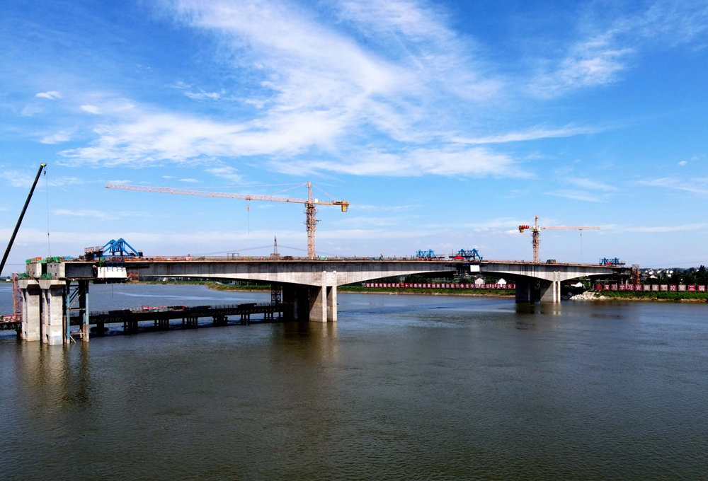【路橋“競(jìng)”行時(shí)】S247改建四期項(xiàng)目姑溪河特大橋左幅中跨順利合龍
