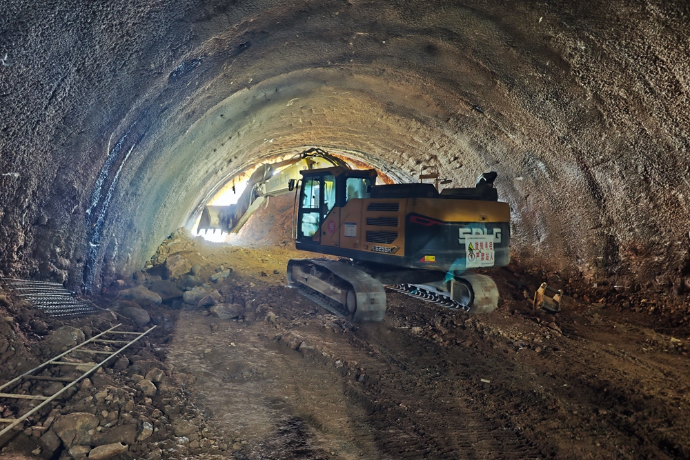 在江梓隧道左洞的內(nèi)部,也同時迎來了激動人心的一刻。隨著挖掘機(jī)挖掘產(chǎn)生的巨大轟鳴聲在隧道內(nèi)回蕩,最后一塊巖石被精準(zhǔn)地挖掘開來,陽光透過新開的洞口灑進(jìn)隧道,照亮了這片黑暗的空間。工人們紛紛停下手中的工作,歡呼雀躍,慶祝這一時刻的到來。江梓隧道左洞的順利貫通,為項目后續(xù)耙齒嶺大橋梁板運(yùn)輸及安裝提供了有力保證,為整體工程的推進(jìn)奠定了堅實基礎(chǔ)。江梓隧道右洞的施工也在緊張施工中,預(yù)計于8月份貫通。