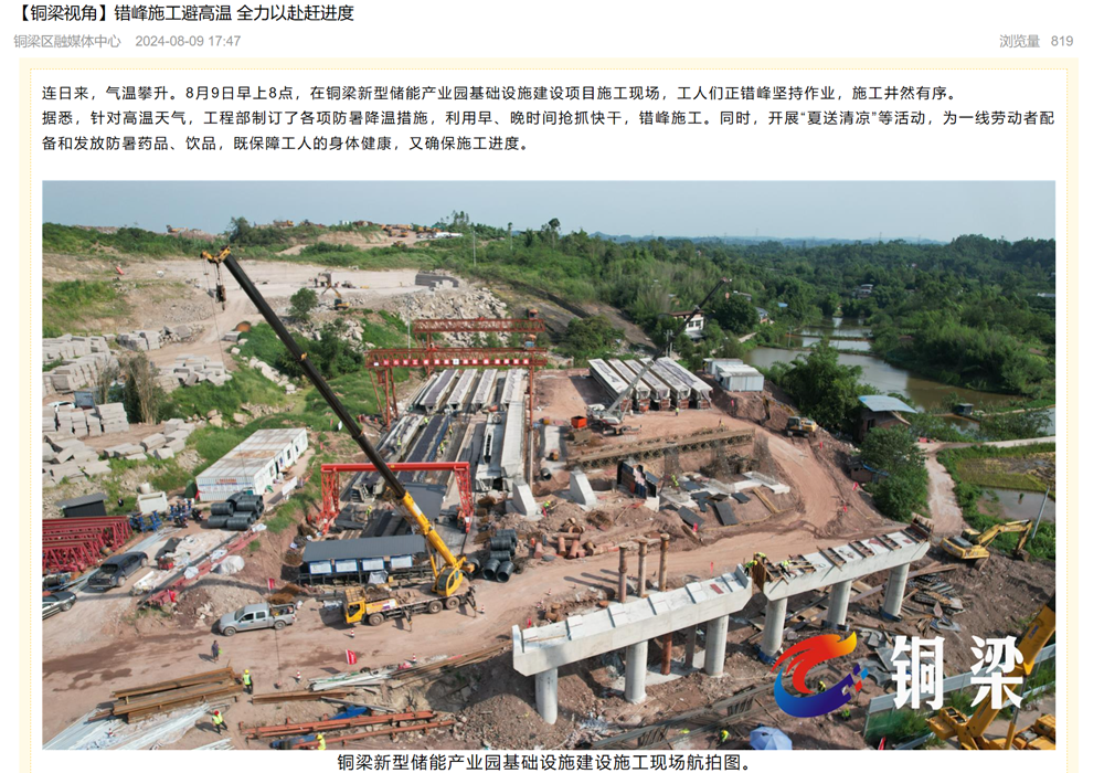 8月9日,重慶銅梁區(qū)融媒體中心聚焦公司承建的重慶銅梁項(xiàng)目建設(shè),對(duì)項(xiàng)目戰(zhàn)高溫、斗酷暑,持續(xù)推進(jìn)施工進(jìn)度,加快配套路網(wǎng)建設(shè),蓄積產(chǎn)業(yè)發(fā)展新動(dòng)能進(jìn)行專題報(bào)道。