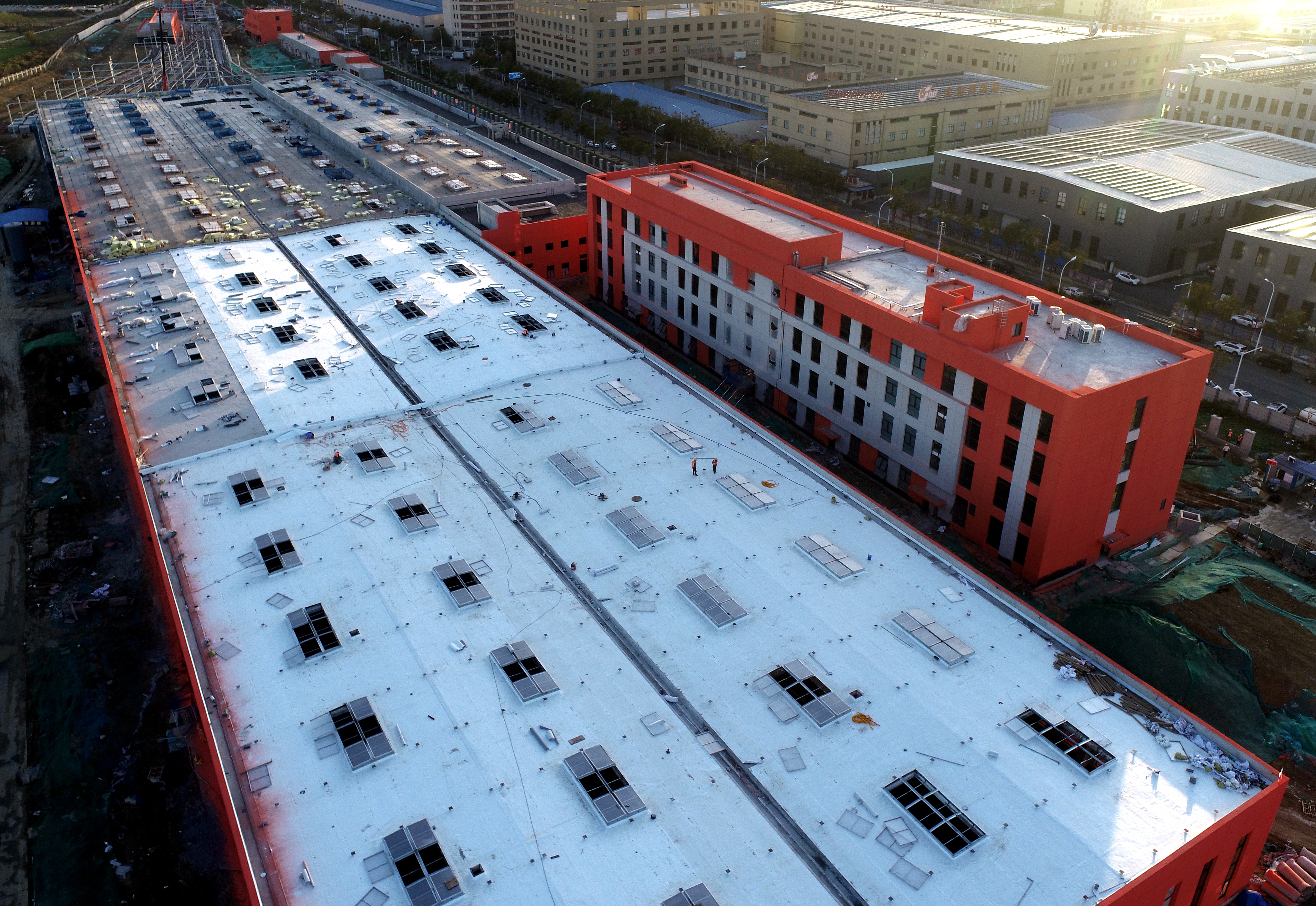 本次屋面板鋪設(shè)約21700平方米。運(yùn)用庫(kù)主體頂板結(jié)構(gòu)整體由鋼骨架輕型混凝土預(yù)制板組成,保證了整體結(jié)構(gòu)安全性。主體結(jié)構(gòu)的全部封頂為內(nèi)部裝修施工奠定了堅(jiān)實(shí)基礎(chǔ)。
