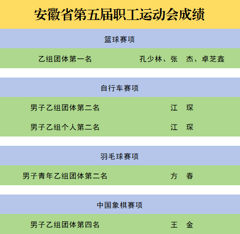11月25日,安徽省第五屆職工運動會在合肥市圓滿落幕。閉幕式上,公司被安徽省總工會、安徽省體育局聯(lián)合授予“安徽省職工體育先進單位”榮譽稱號。