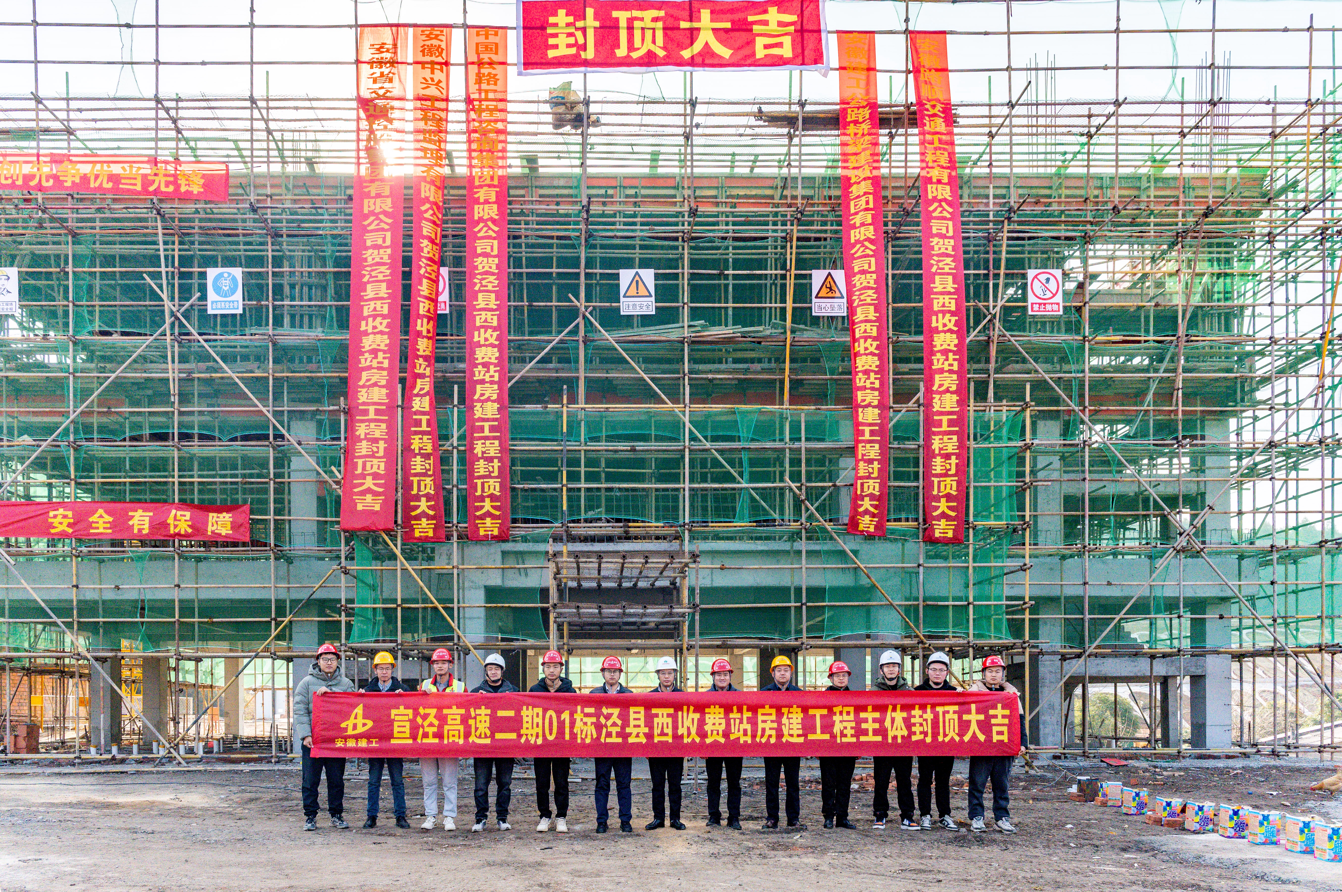 宣涇高速二期01標(biāo)涇縣西收費(fèi)站房建工程順利封頂