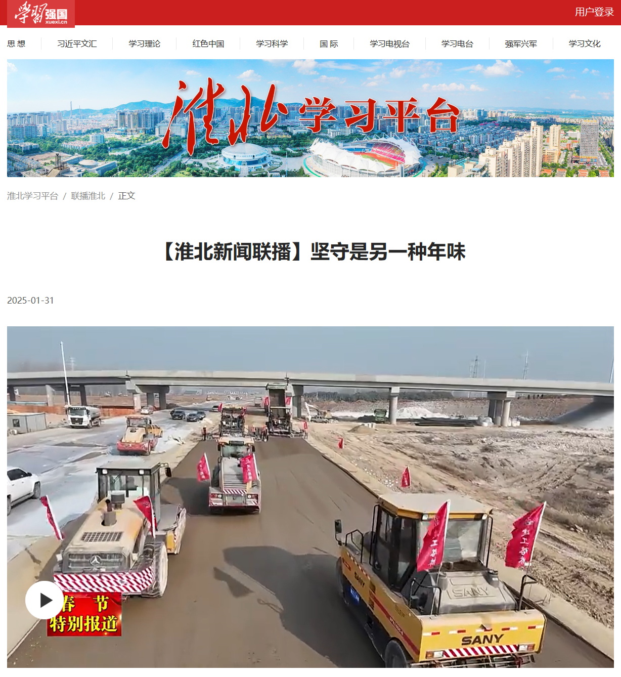 【名媒聚焦】學(xué)習(xí)強(qiáng)國(guó)、淮北新聞聯(lián)播關(guān)注報(bào)道徐淮阜高速淮北段項(xiàng)目春節(jié)期間堅(jiān)守項(xiàng)目建設(shè)