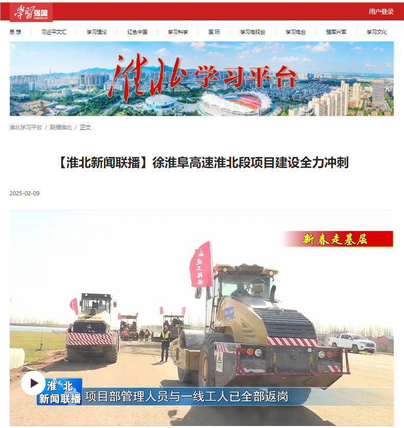 【名媒聚焦】學習強國、淮北新聞聯(lián)播、淮北日報:徐淮阜高速淮北段項目全力以“復(fù)”加油干