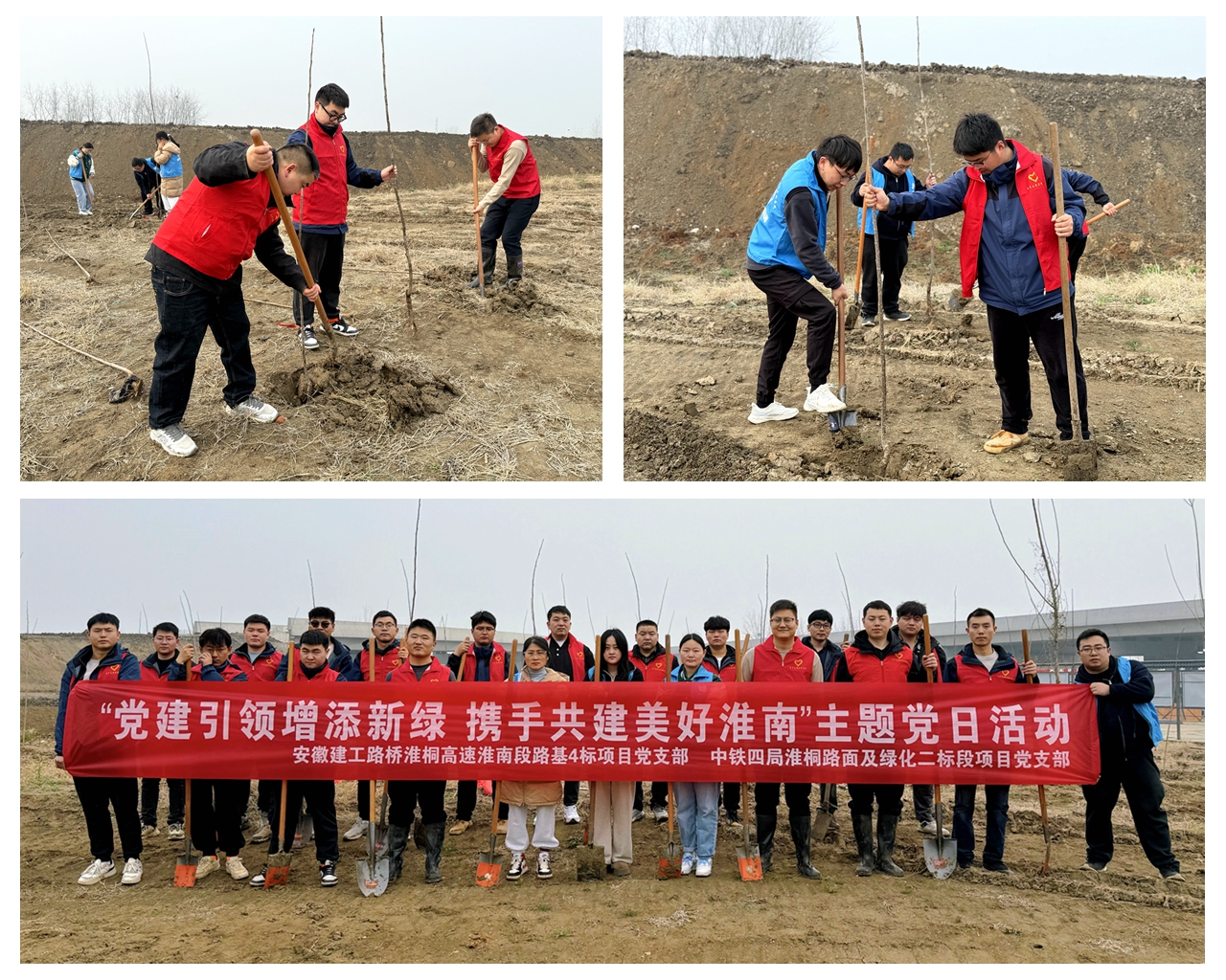 淮桐高速淮南段路基4標(biāo)項目黨支部聯(lián)合中鐵四局淮桐路面及綠化二標(biāo)黨支部在李山互通聯(lián)合開展“黨建引領(lǐng)增添新綠,攜手共建美好淮南”主題黨日活動。