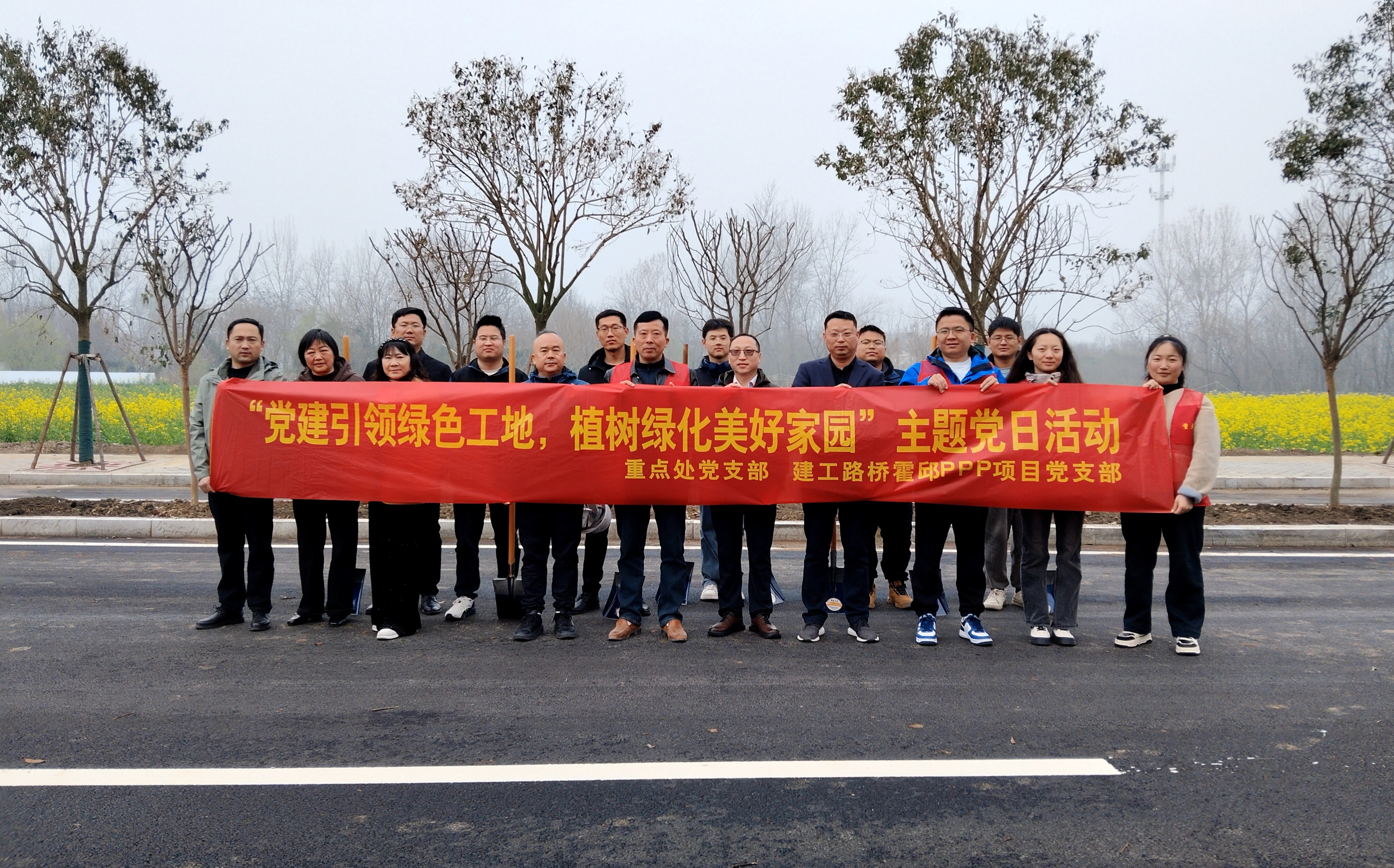 霍邱PPP項目黨支部聯(lián)合縣重點處和項目公司開展“黨建引領(lǐng)綠色工地,植樹綠化美好家園”主題黨日活動。項目全體黨員和青年職工積極行動,不負(fù)春光添新綠。