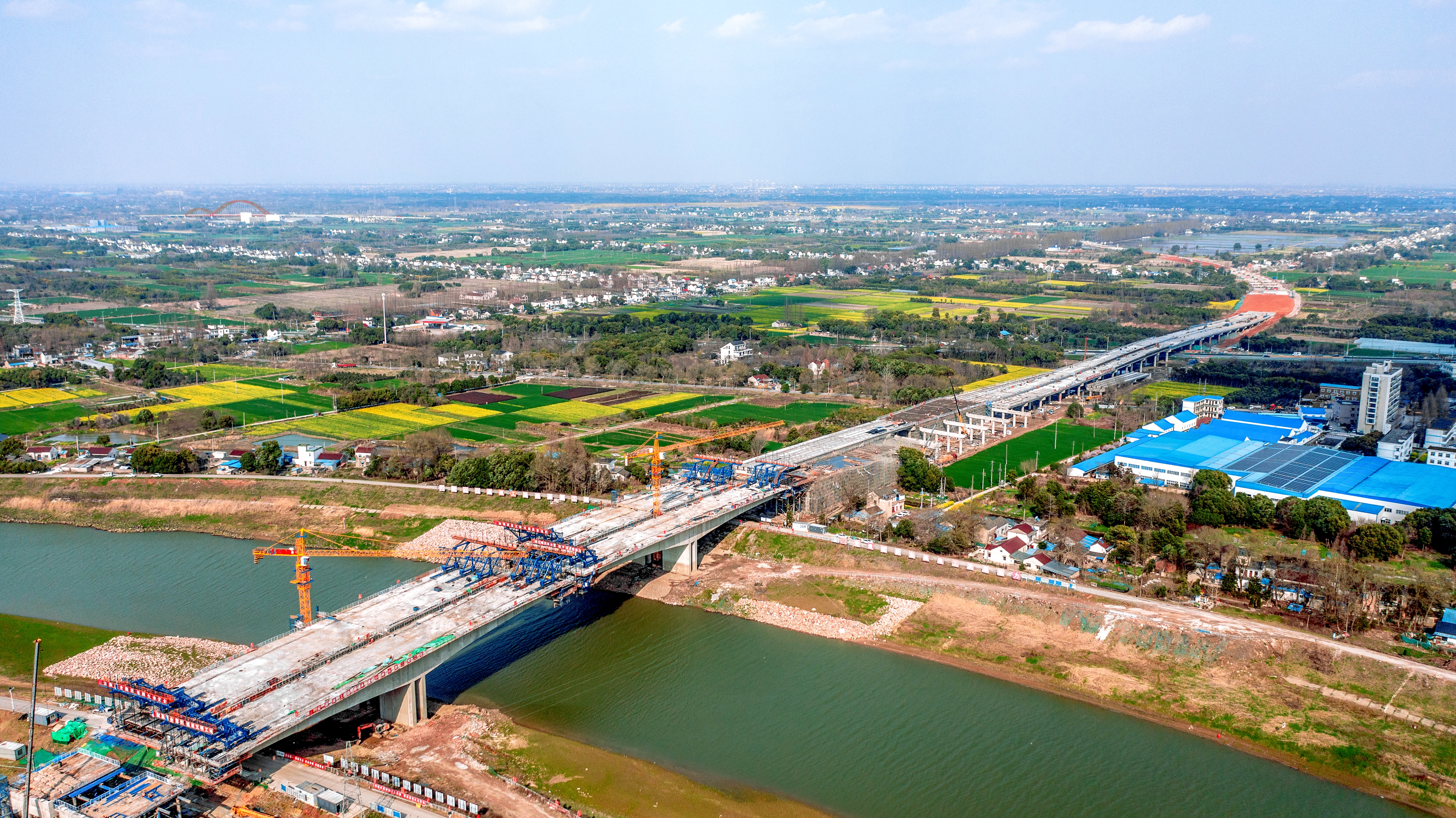 在蕪湖青弋江畔,S334峨山路東延伸新建二期工程青弋江特大橋東引橋左幅已順利貫通,主橋現(xiàn)澆施工緊鑼密鼓推進(jìn),確保如期實現(xiàn)4月份主橋合龍和年底主線貫通目標(biāo)。