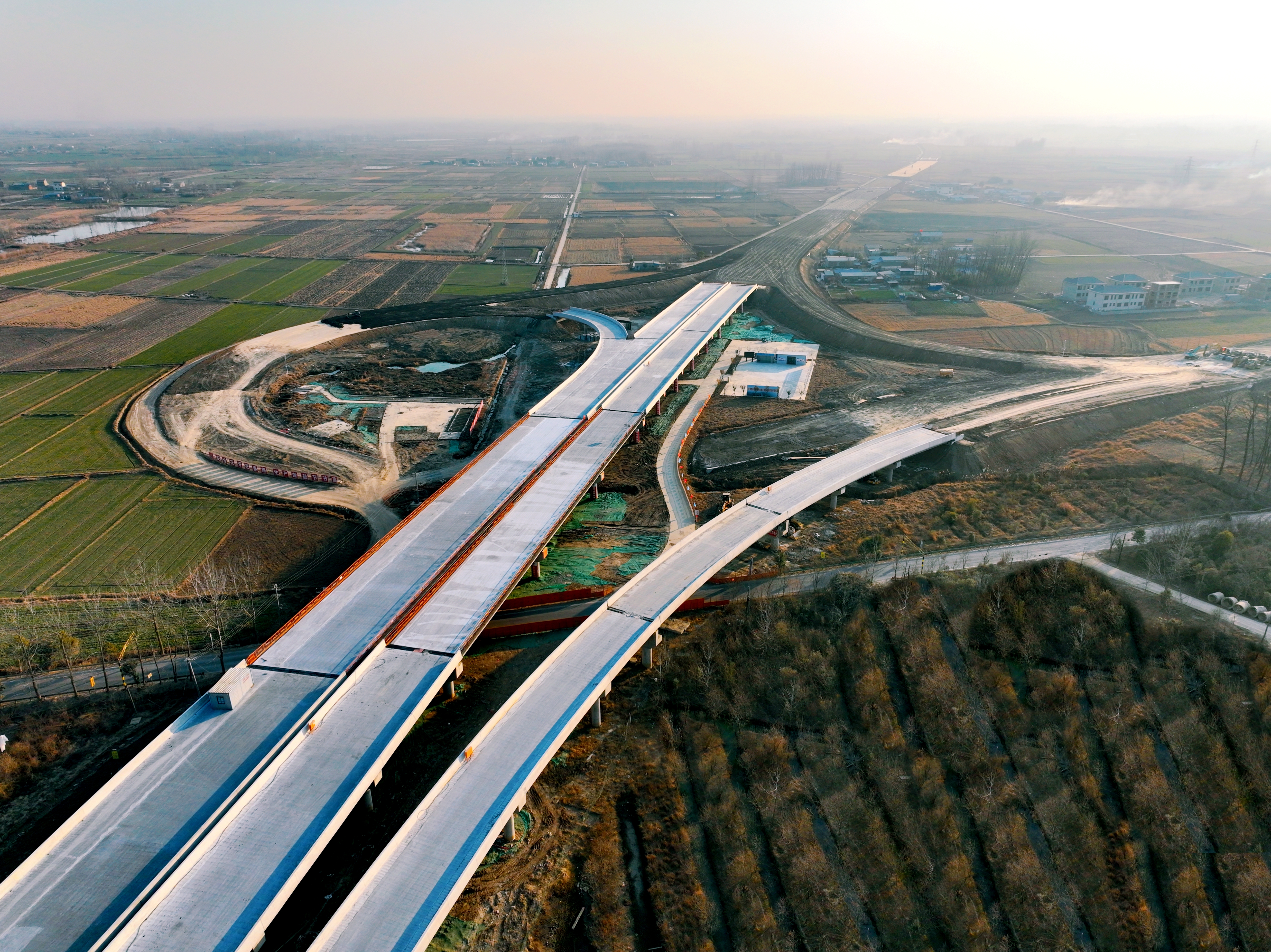 據(jù)了解,S19淮桐高速淮南段路基4標段項目全長9.6千米,有互通2處(小甸互通、李山互通)、橋梁15座。在小甸互通,橋面系鋪裝和護欄施工如火如荼。截至目前,該標段已完成合同工程量92%。因主線施工和當?shù)囟鄺l縣、鄉(xiāng)道交叉,項目采用“保通匝道+同步施工”方案。通過提前修建一條保通匝道分流交通,積極主動做好與當?shù)卣臏贤▍f(xié)調(diào),實現(xiàn)主線通行與匝道橋施工并行推進,預(yù)計可縮短工期1個月。