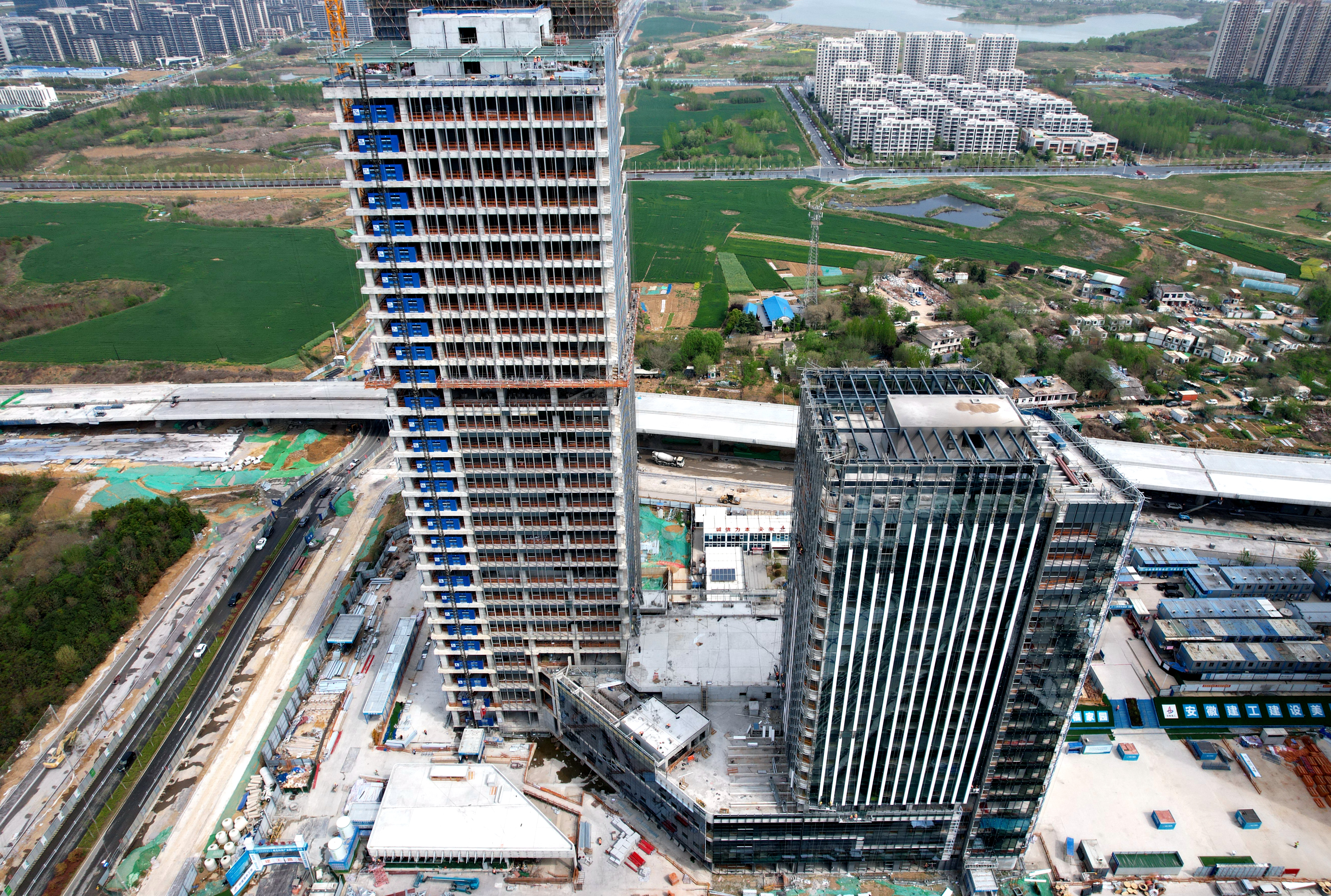 當前,項目二期A2、A3樓幕墻玻璃安裝超過90%,A4樓幕墻玻璃安裝超50%。