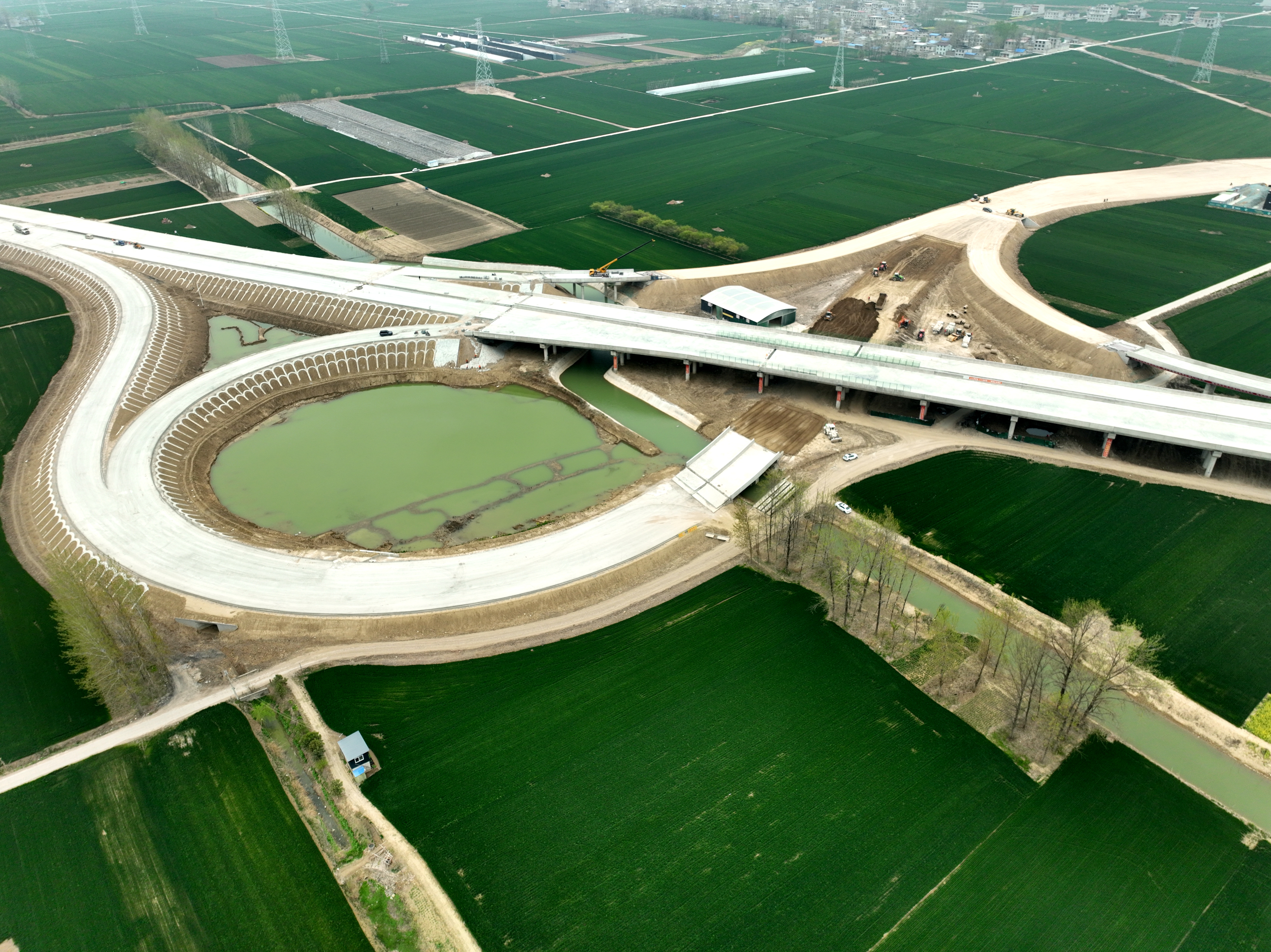 在徐淮阜高速亳州段,項目搶抓晴好天氣窗口期,克服改路改溝、土源緊張問題,全力鋪開作業(yè)面,陸續(xù)完成渦陽互通路基建設(shè)、交驗工作,實現(xiàn)首座上跨天橋通車放行,力爭4月底完成項目主線路基交驗及剩余車行天橋施工任務(wù)。