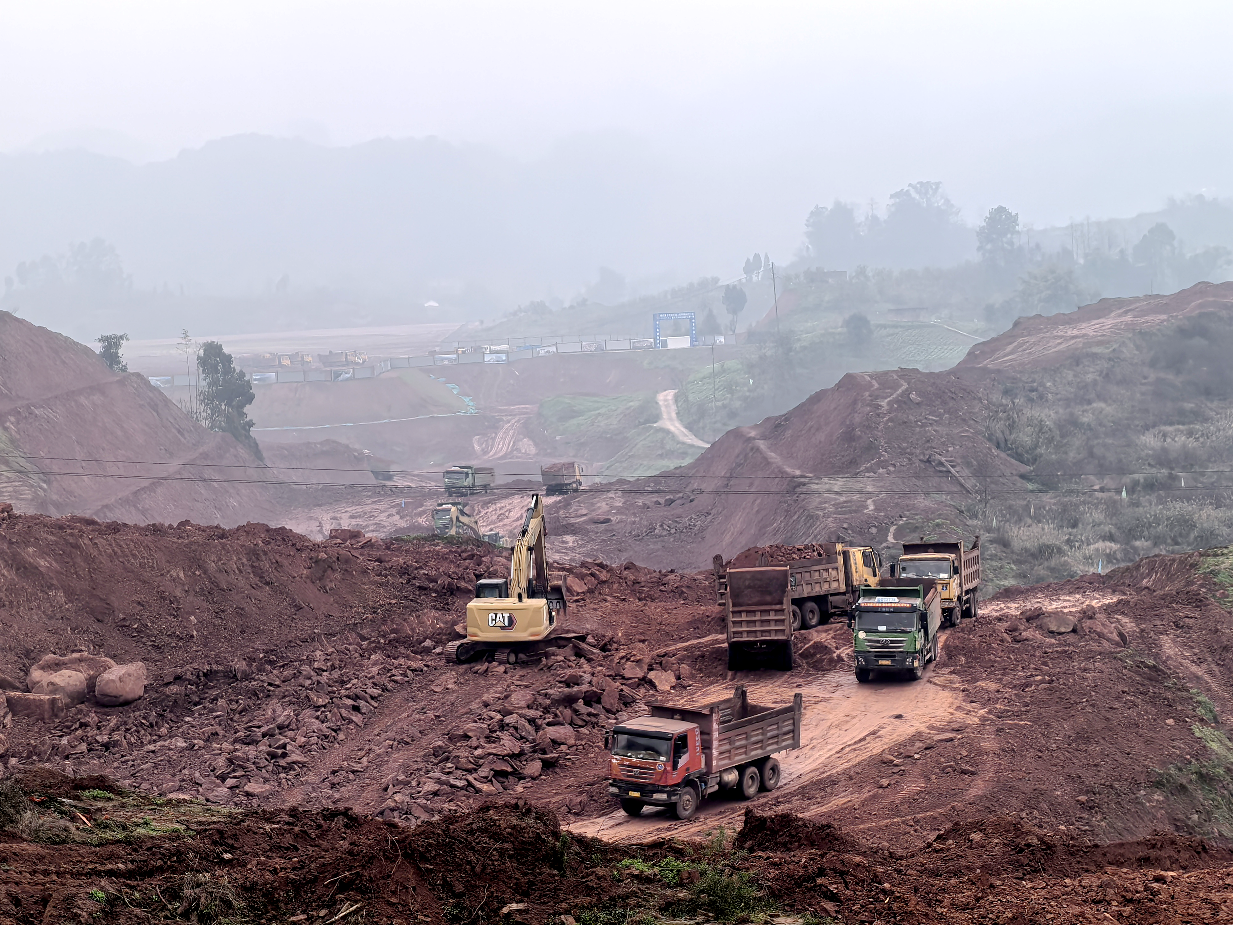 在川渝路二期項目,項目開啟“進(jìn)場即大干”模式,僅用20天就完成特殊路基施工任務(wù),開啟了路基大規(guī)模填筑工序。針對沿線水田區(qū)域采用“分層碾壓+碎石墊層”工藝實現(xiàn)高效換填,有效解決了軟弱地基承載難題。