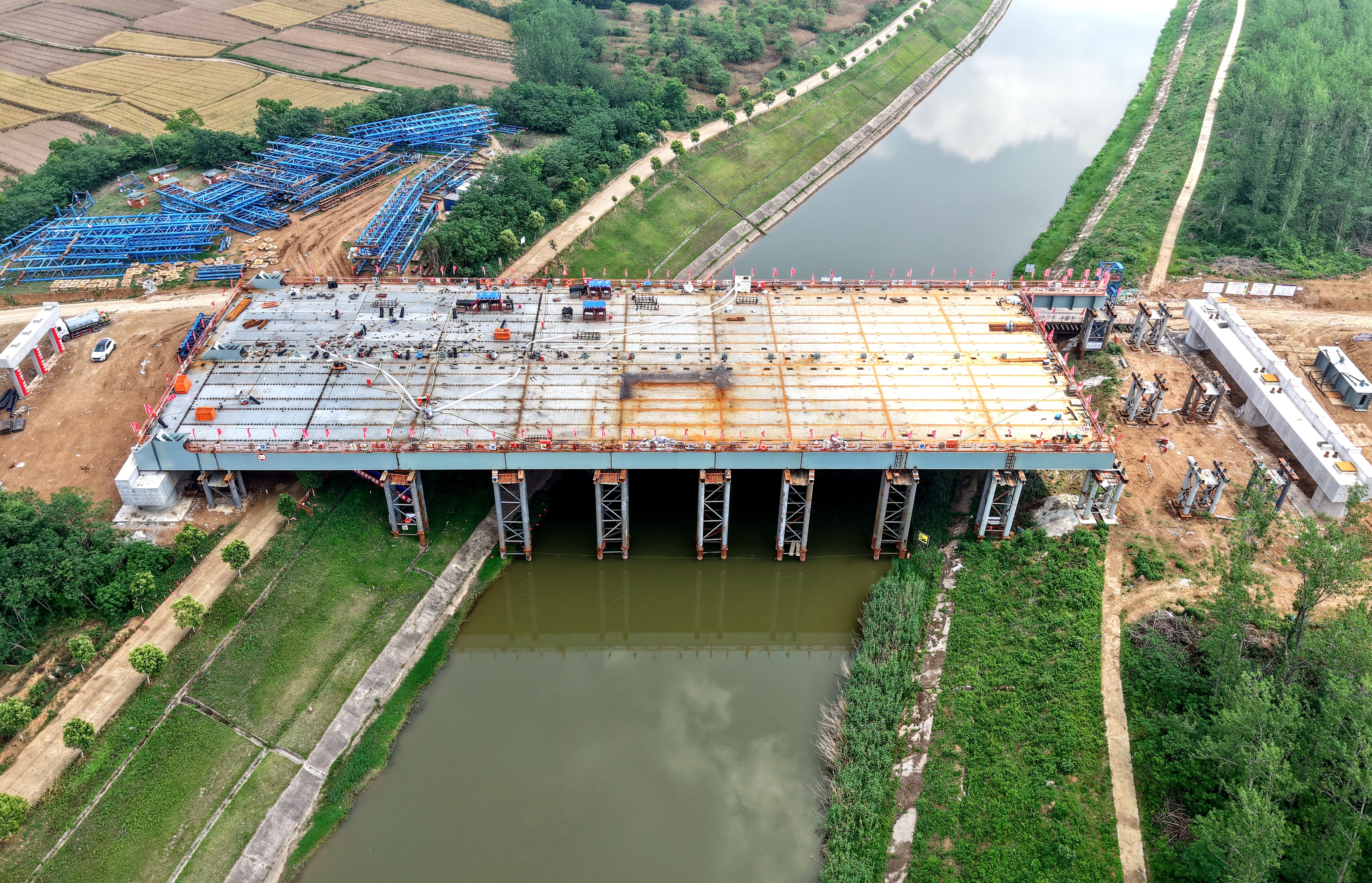 二季度以來,分公司全面提振信心,強(qiáng)化構(gòu)建“季攻堅(jiān)-月總結(jié)-周調(diào)度-日落實(shí)”四級(jí)管控體系,深化領(lǐng)導(dǎo)班子包保督導(dǎo)機(jī)制,建立部門聯(lián)動(dòng)責(zé)任清單,形成全周期項(xiàng)目管理閉環(huán),為項(xiàng)目高效推進(jìn)提供體系保障,全力推進(jìn)在建及新開工項(xiàng)目實(shí)現(xiàn)產(chǎn)值轉(zhuǎn)化。針對(duì)淮桐高速合肥段路基2標(biāo)進(jìn)度生產(chǎn)癥結(jié),分管領(lǐng)導(dǎo)駐點(diǎn)項(xiàng)目協(xié)調(diào)現(xiàn)場(chǎng)土源,推進(jìn)路基施工,引江濟(jì)淮特大橋主墩樁基順利開鉆施工,淠河總干渠橋鋼箱系桿拱主梁即將合龍,大柏互通立交多聯(lián)箱梁完成澆筑。項(xiàng)目榮獲合桐公司淮桐高速綜合考評(píng)第一名。合肥新橋國(guó)際機(jī)場(chǎng)綜合交通中心項(xiàng)目錨定剩余施工任務(wù)強(qiáng)化攻堅(jiān),旅客酒店、多功能廳鋼結(jié)構(gòu)安裝成功封頂,樓承板澆筑完成,交通中心二次結(jié)構(gòu)接近尾聲,先后榮獲集團(tuán)流動(dòng)紅旗項(xiàng)目、安徽省工人先鋒號(hào)、安徽省重大項(xiàng)目勞動(dòng)競(jìng)賽一等獎(jiǎng)等榮譽(yù)。桃花科創(chuàng)產(chǎn)業(yè)園項(xiàng)目二期幕墻安裝突破2.88萬平方米,單日施工效率提升至500平方米;巢湖南路二期靈活運(yùn)用“分段平行施工法”,路基作業(yè)面全面打開,水穩(wěn)層試驗(yàn)段一次性通過驗(yàn)收;人工智能產(chǎn)業(yè)園項(xiàng)目廠房和研發(fā)樓基礎(chǔ)工程較節(jié)點(diǎn)計(jì)劃提前10天完成……推進(jìn)在建項(xiàng)目的同時(shí),分公司同步加快新開工項(xiàng)目前期策劃、招標(biāo)、駐地建設(shè)等幫扶工作,軌道TOD項(xiàng)目、蒙城北路、余杭路、新淮大道、包河地塊、蜀山地塊、習(xí)友路二期、萬佛湖連接線等一批新項(xiàng)目實(shí)現(xiàn)跑步進(jìn)場(chǎng),為全面產(chǎn)值轉(zhuǎn)化奠定基礎(chǔ)。常抓不懈 嚴(yán)守底線