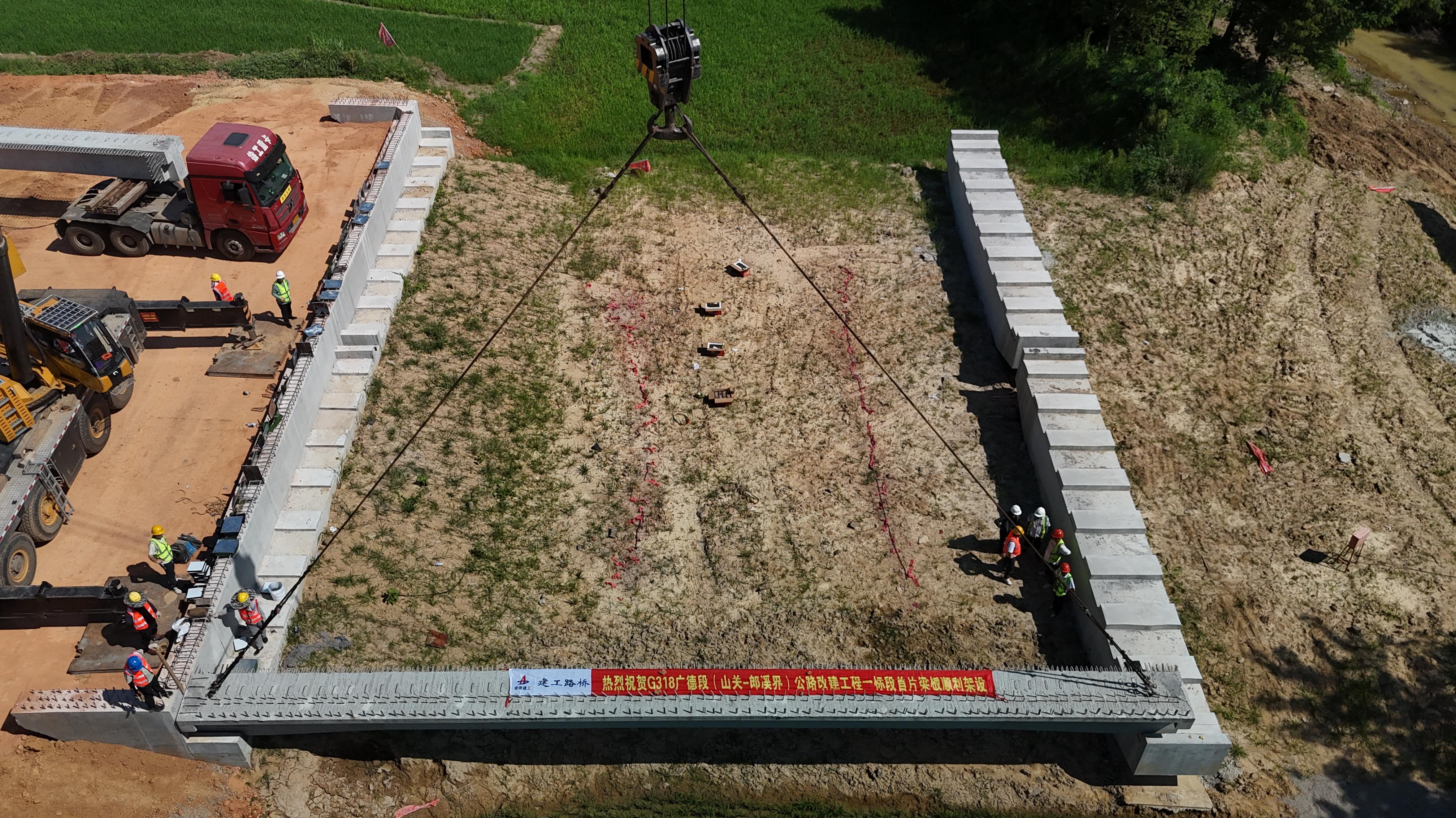 【路橋“競”行時】G318廣德段01標首片T梁架設(shè)成功