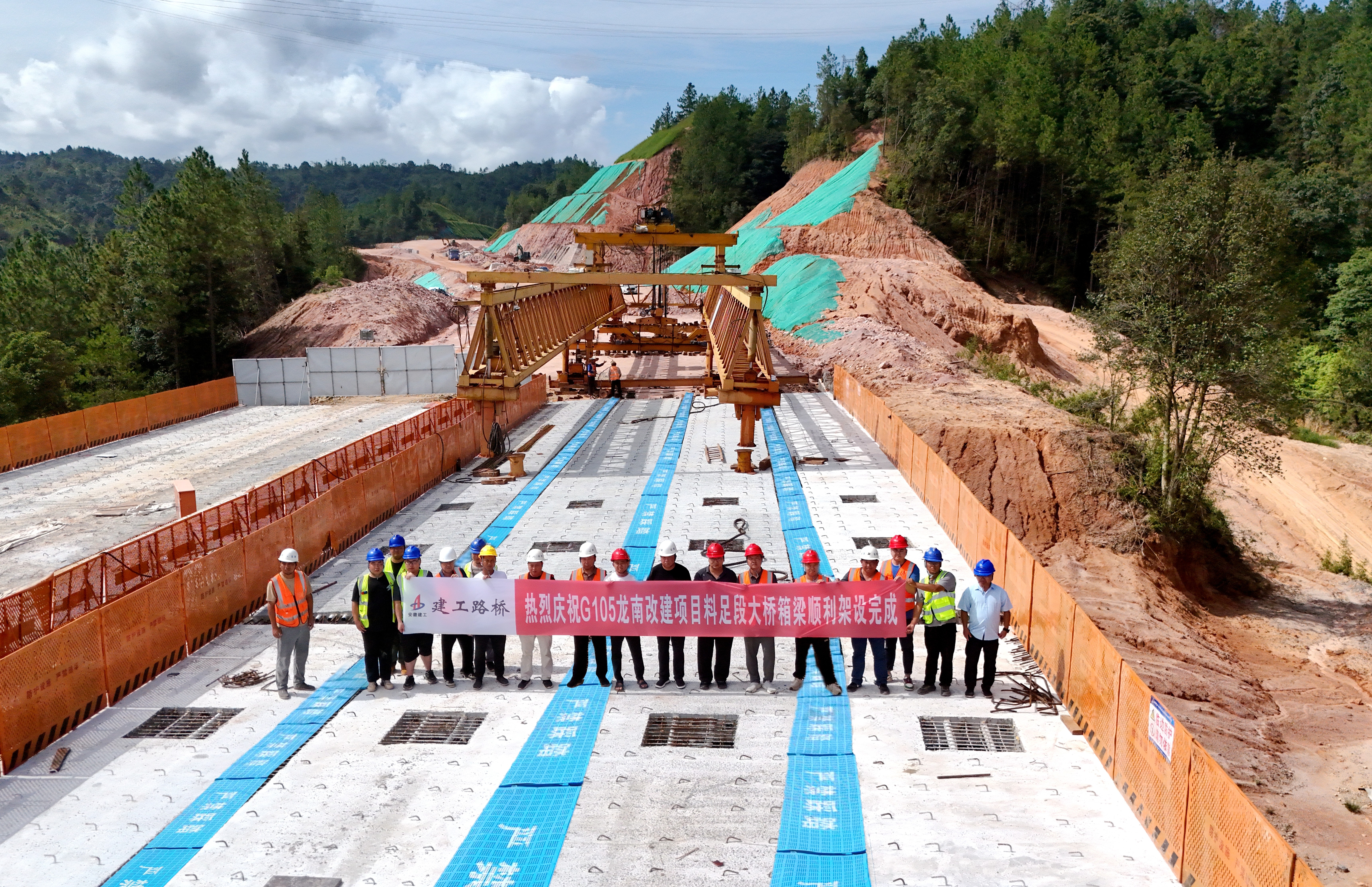 【路橋“競(jìng)”行時(shí)】G105龍南改建項(xiàng)目料足段大橋預(yù)制箱梁架設(shè)完成