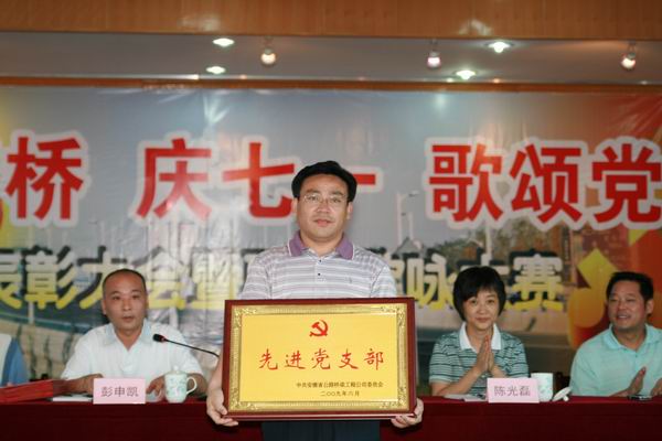 會(huì)上,公司黨委委員、總工程師彭申凱同志宣讀了公司黨委《關(guān)于表彰公司2008年度先進(jìn)黨支部、優(yōu)秀黨務(wù)工作者、優(yōu)秀共產(chǎn)黨員的決定》以及《關(guān)于紀(jì)念改革開(kāi)放30周年征文、攝影活動(dòng)獲獎(jiǎng)情況通報(bào)》。在歡快的樂(lè)曲聲中,公司領(lǐng)導(dǎo)為先進(jìn)黨支部、優(yōu)秀黨務(wù)工作者、優(yōu)秀共產(chǎn)黨員頒發(fā)了獎(jiǎng)牌和證書(shū);為征文的獲獎(jiǎng)作品頒發(fā)了紀(jì)念品。