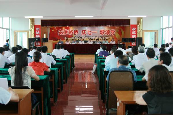 會(huì)議在雄壯的《國(guó)際歌》聲中開(kāi)始。黨委書(shū)記陳光磊作了《牢記宗旨、珍惜榮譽(yù)、勇往直前》激情洋溢的講話。她說(shuō):今天我們大家在此歡聚一堂,紀(jì)念我們偉大的中國(guó)共產(chǎn)黨成立88周年,并對(duì)公司2008年度的先進(jìn)基層黨組織和優(yōu)秀黨員、黨務(wù)工作者進(jìn)行集中表彰。這是一個(gè)喜慶的日子,也是一個(gè)值得紀(jì)念的日子。在此,我謹(jǐn)代表公司黨委對(duì)所受表彰的先進(jìn)單位和個(gè)人表示熱烈的祝賀,向公司所有的黨員表示崇高的敬意。接著她深情回顧了黨的光輝歷程,同時(shí)要求我們也應(yīng)該更加自覺(jué)地牢記黨的宗旨,在自己的工作崗位上勤奮、踏實(shí)、敬業(yè)的工作,為黨徽增光,為黨旗添彩。隨后,陳書(shū)記對(duì)2008年的黨委工作進(jìn)行了回顧總結(jié),并對(duì)2009年下半年就如何進(jìn)一步加強(qiáng)黨的建設(shè),深入學(xué)習(xí)實(shí)踐落實(shí)科學(xué)發(fā)展觀,更好地發(fā)揮黨組織的政治核心作用、戰(zhàn)斗堡壘作用和黨員的先鋒模范作用,提了幾點(diǎn)要求:一、繼續(xù)認(rèn)真開(kāi)展學(xué)習(xí)實(shí)踐科學(xué)發(fā)展觀活動(dòng),充分認(rèn)清制約公司科學(xué)發(fā)展的問(wèn)題,并有效整改,使公司走上科學(xué)發(fā)展的軌道;二、轉(zhuǎn)變觀念,找準(zhǔn)黨建工作的“切入點(diǎn)”,積極主動(dòng)的融入中心工作,充分發(fā)揮基層黨組織的戰(zhàn)斗堡壘作用;三、充分發(fā)揮共產(chǎn)黨員先鋒模范作用,增強(qiáng)號(hào)召力、凝聚力、戰(zhàn)斗力。最后,陳書(shū)記號(hào)召全體黨員把全部心思和精力集中到加快公司發(fā)展上,把各方面的力量凝聚到加快公司發(fā)展上,把共產(chǎn)黨人的先進(jìn)性體現(xiàn)到加快公司發(fā)展上,以更加飽滿的熱情、更加務(wù)實(shí)的精神、更加積極的工作狀態(tài)投入到各項(xiàng)工作中去,團(tuán)結(jié)帶領(lǐng)公司廣大員工,努力把握發(fā)展的大好機(jī)遇,為促進(jìn)安徽路橋的穩(wěn)健發(fā)展做出新的貢獻(xiàn)。