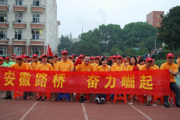 來自21個單位的近500員工組成了不同色彩的10個方隊(duì)參加了開幕式。公司由總經(jīng)理汪衛(wèi)東、黨委書記陳光磊帶隊(duì),組成約100人的方隊(duì)舉著“安徽路橋 奮力崛起”的橫幅,高喊“安徽路橋 搶抓機(jī)遇 實(shí)現(xiàn)跨越 科學(xué)發(fā)展 共促和諧”的口號,向集團(tuán)領(lǐng)導(dǎo)和兄弟單位展示了公司積極向上的風(fēng)采。