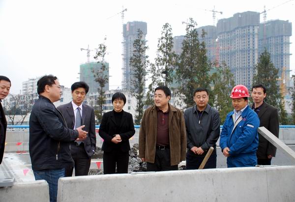 胡董事長一行首先視察了即將完工的合肥市政重點工程——合作化南路高架1標。在公司總經(jīng)理汪衛(wèi)東、黨委書記陳光磊等有關(guān)領(lǐng)導(dǎo)的陪同下,胡董事長登上高架橋,沿途視察了工程建設(shè)情況。即將完工的高架橋已經(jīng)展現(xiàn)雄姿,施工人員正在緊張忙碌著,胡董事長走上前與他們握手交談,仔細了解施工新技術(shù)、新工藝、新材料應(yīng)用情況。當(dāng)聽說合作化南路高架因進度快、質(zhì)量好、安全文明施工受到合肥市領(lǐng)導(dǎo)及有關(guān)部門的多次贊揚時,胡董事長欣慰的笑了。胡董事長指出,合作化路高架橋建設(shè)體現(xiàn)了路橋公司在整合資源上的獨到之處,這條路也是他所看過的最好的一條路,安徽省路橋公司不愧為安徽路橋行業(yè)的第一品牌!