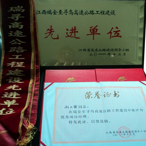 公司承建的瑞尋A7標(biāo)在公司的正確領(lǐng)導(dǎo)下,在以劉大雷同志為首的項(xiàng)目全體員工的共同奮斗下,經(jīng)過兩年的頑強(qiáng)拼搏、艱苦施工,終于實(shí)現(xiàn)了瑞尋高速公路的建成通車,在贛南大地描繪了一條絢麗的彩虹,書寫了一幅質(zhì)優(yōu)、安全、廉潔、環(huán)保的壯麗畫卷。瑞尋A7標(biāo)以工程質(zhì)量更優(yōu)、外觀形象更美、生態(tài)環(huán)境更佳、依法管理更嚴(yán)、安全廉潔更好為要求,以抓細(xì)節(jié)、樹精品、講程序、促規(guī)范、善創(chuàng)新、爭一流為管理理念,取得了一系列的優(yōu)異成績。在項(xiàng)目辦的兩次階段評比中均獲得A段第一,全線第二名的好成績,還獲得了業(yè)主頒布的“先進(jìn)單位”稱號(hào),項(xiàng)目經(jīng)理劉大雷獲得了瑞尋項(xiàng)目“優(yōu)秀項(xiàng)目經(jīng)理”稱號(hào),項(xiàng)目總工戴聲慶、副經(jīng)理鳳爾飛、王星輝和黃明明四人獲得了“先進(jìn)個(gè)人”稱號(hào)。