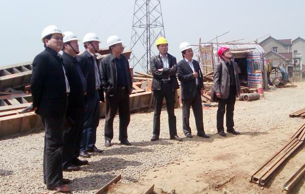 戴總一行首先來到宣貍改建L4標(biāo)北山河大橋施工現(xiàn)場,對北山河橋掛籃及主橋施工進(jìn)行了細(xì)致的了解,并聽取了L4標(biāo)項目經(jīng)理江仲明關(guān)于工程質(zhì)量與進(jìn)度、安全文明施工方面的匯報。隨后,在L5標(biāo)項目經(jīng)理劉冬的陪同下,戴總一行察看了L5標(biāo)全線的生產(chǎn)和進(jìn)度情況,對工程目前階段的重點和難點給予了建設(shè)性指導(dǎo)意見。